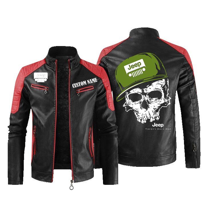 Custom Name Skull Design Jeep Leather Biker Jacket