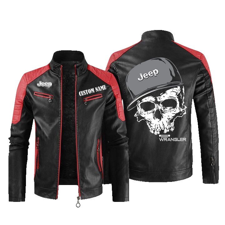 Custom Name Skull Design Jeep wrangler Leather Biker Jacket