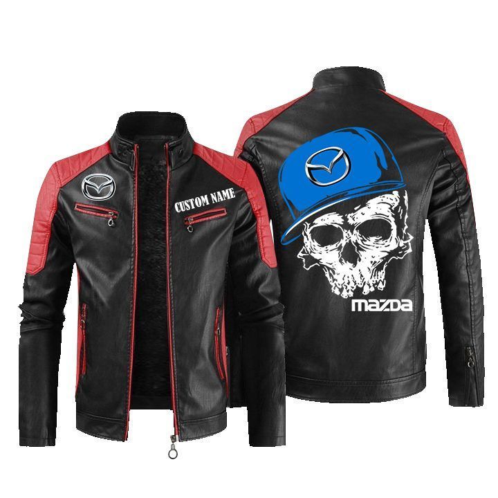 Custom Name Skull Design Mazda Leather Biker Jacket