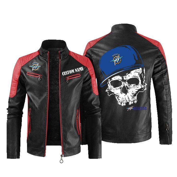 Custom Name Skull Design MV Agusta Leather Biker Jacket