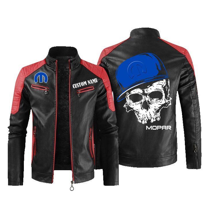 Custom Name Skull Design Mopar Leather Biker Jacket