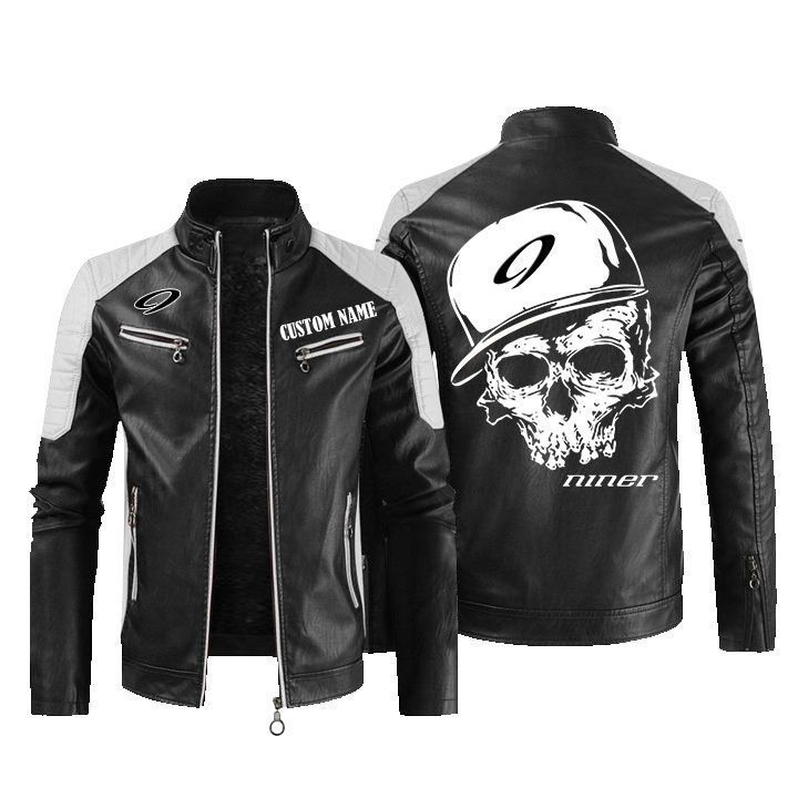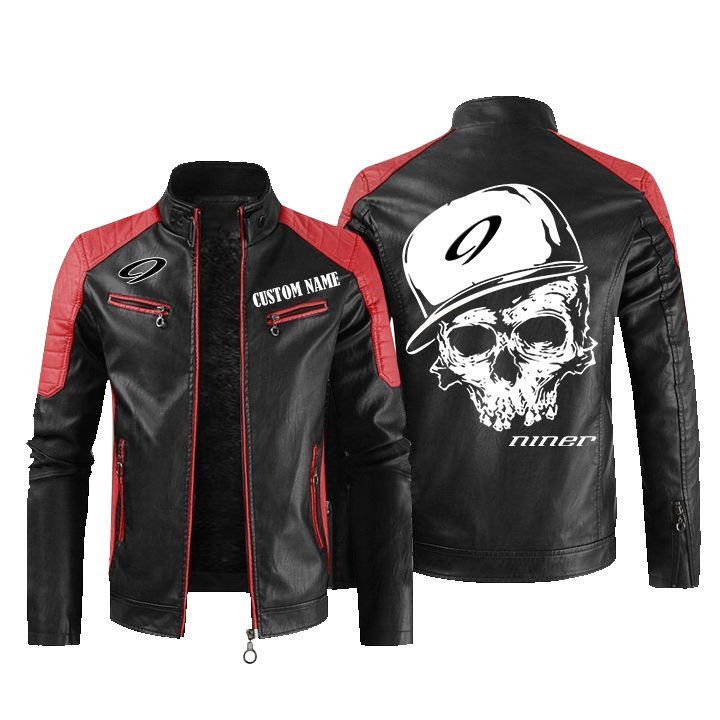 Custom Name Skull Design Niner Bikes Leather Biker Jacket