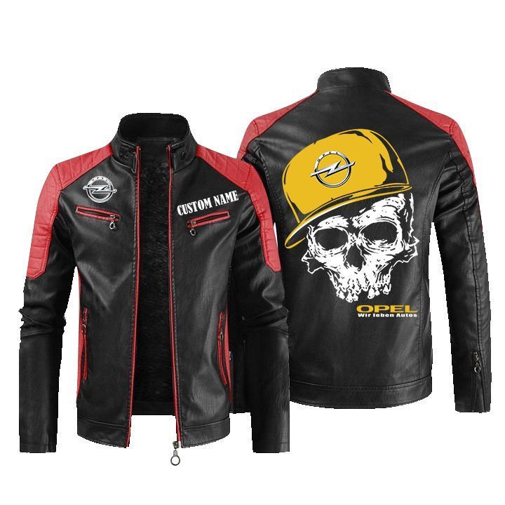 Custom Name Skull Design Opel Hooded Leather Jacket