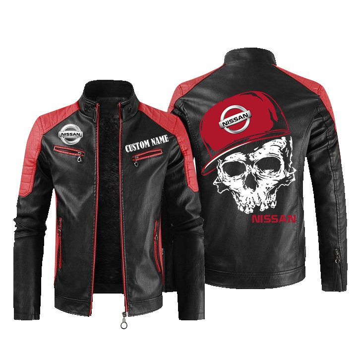Custom Name Skull Design Nissan Leather Biker Jacket