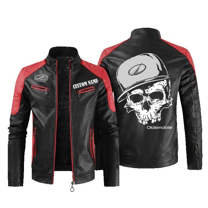 Custom Name Skull Design Oldsmobile Leather Biker Jacket