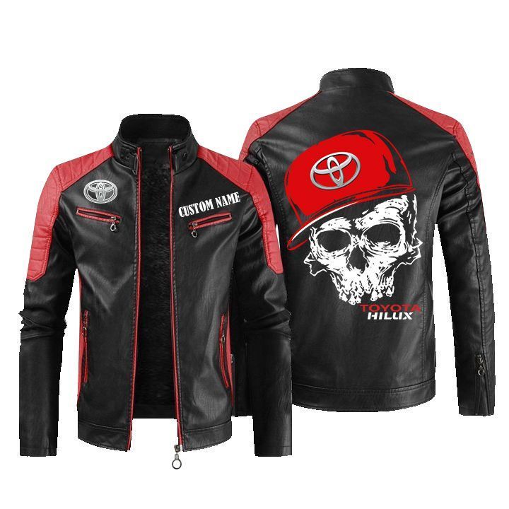 Custom Name Skull Design Toyota Hilux Leather Biker Jacket