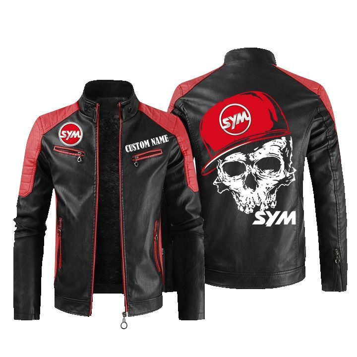 Custom Name Skull Design SYM Motors Leather Biker Jacket