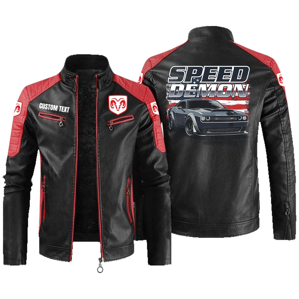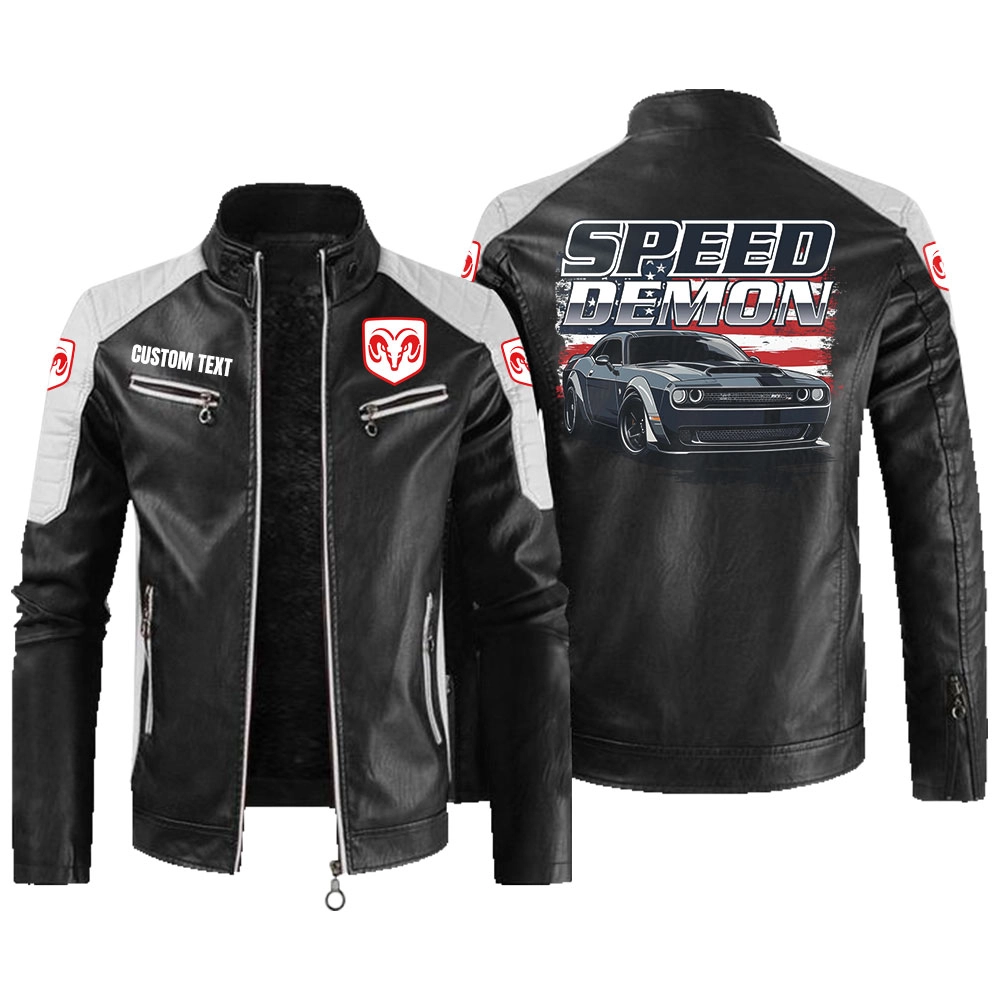 Dodge Challenger SRT Demon Leather Biker Jacket Custom Name And Logo