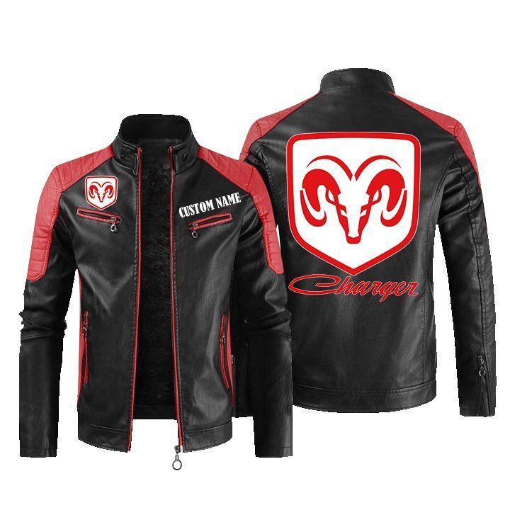 Dodge Challenger Scat Pack Leather Biker Jacket Custom Name And Logo