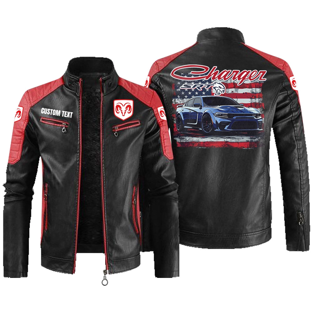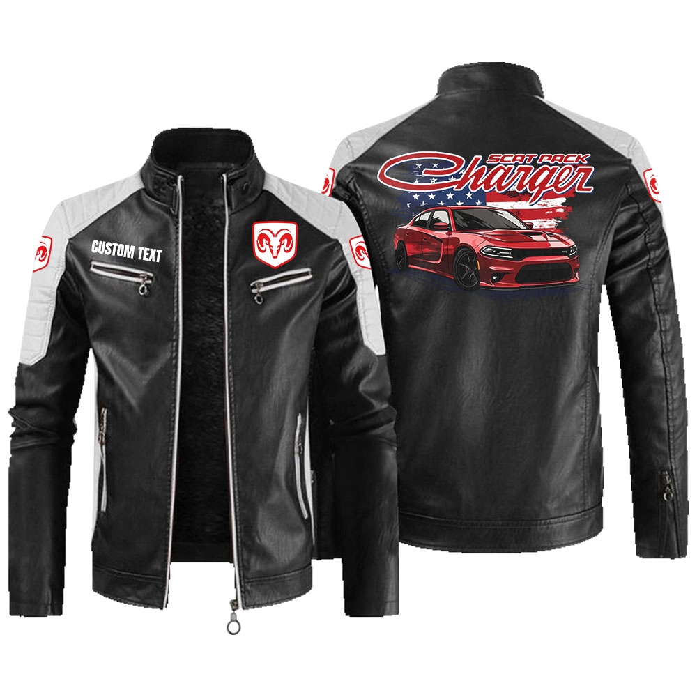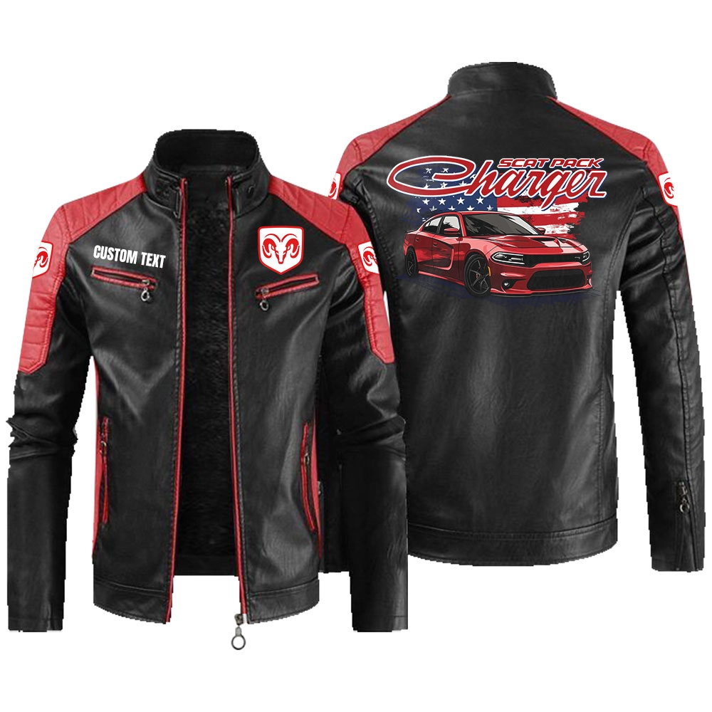 Dodge Charger Scat Pack Leather Biker Jacket Custom Name And Logo