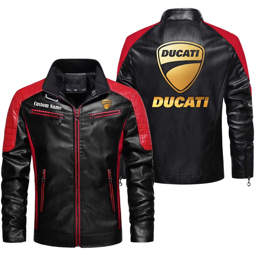 Ducati Golden Logo Leather Biker Jacket Custom Name And Logo