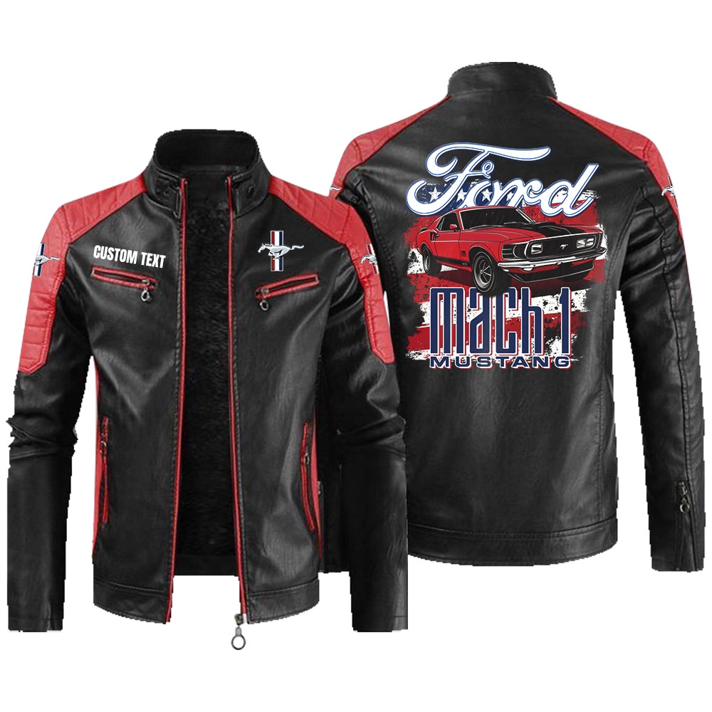 Ford Mustang Mach 1 Leather Biker Jacket Custom Name And Logo