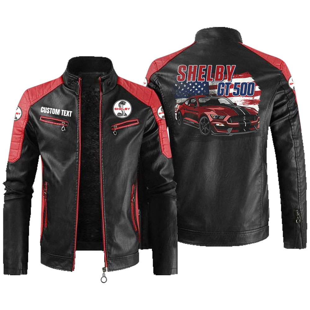 Ford Mustang Shelby GT500 Leather Biker Jacket Custom Name And Logo