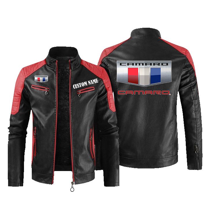 Chevrolet Camaro Golden Logo Leather Biker Jacket Custom Name And Logo