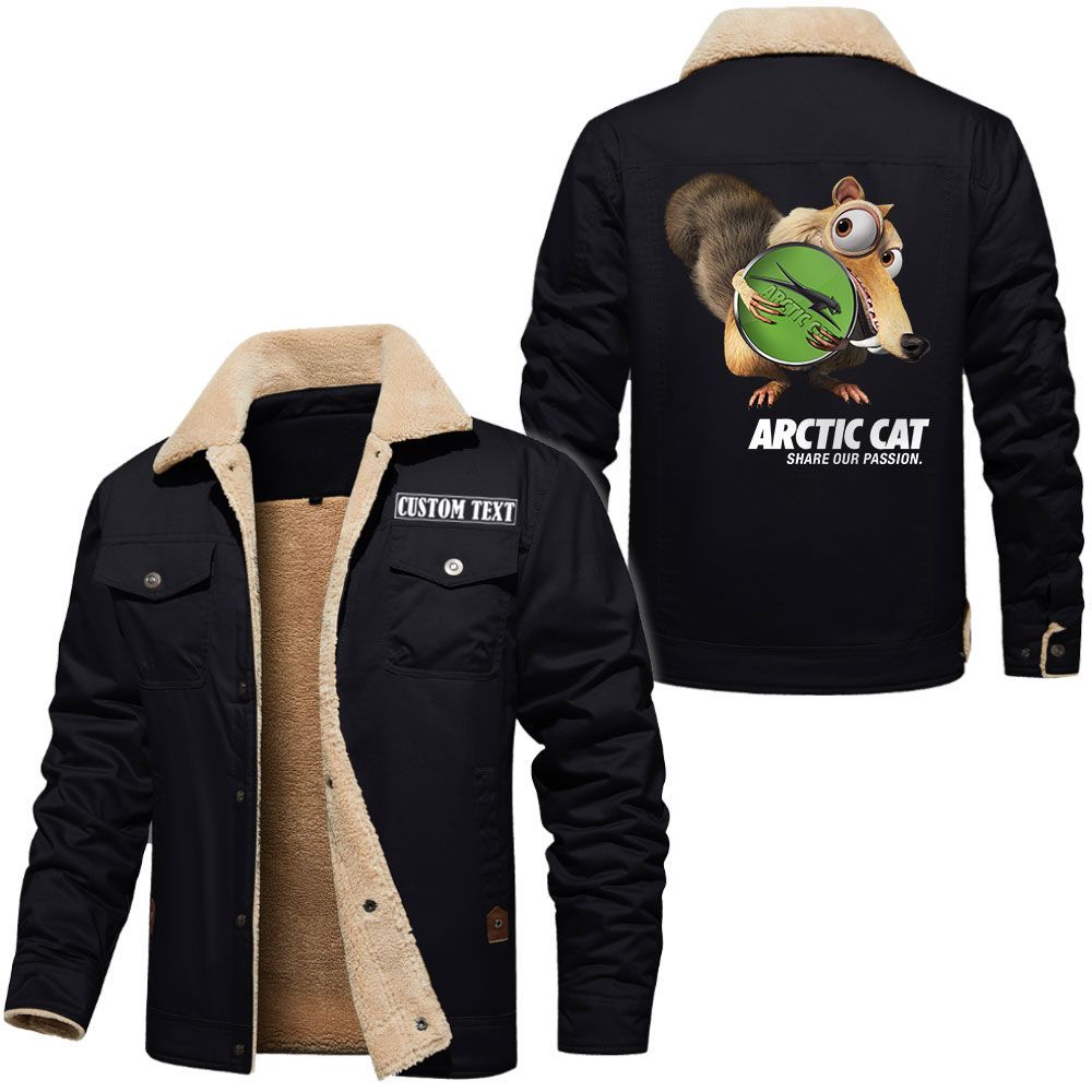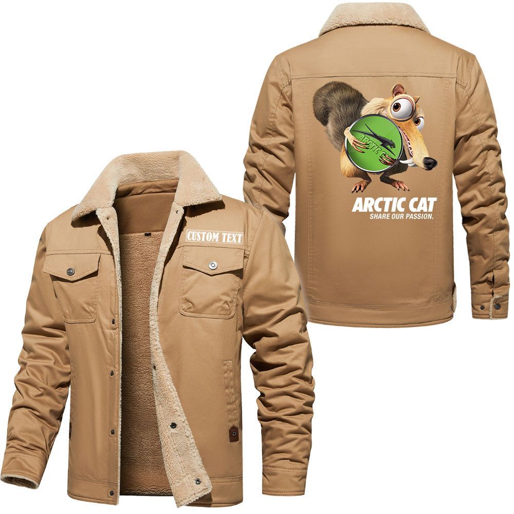 Arctic cat Logo Custom Name Cargo Fleece Lined Cotton Jacket Scrat Ice Age Design Personalized Outerwear