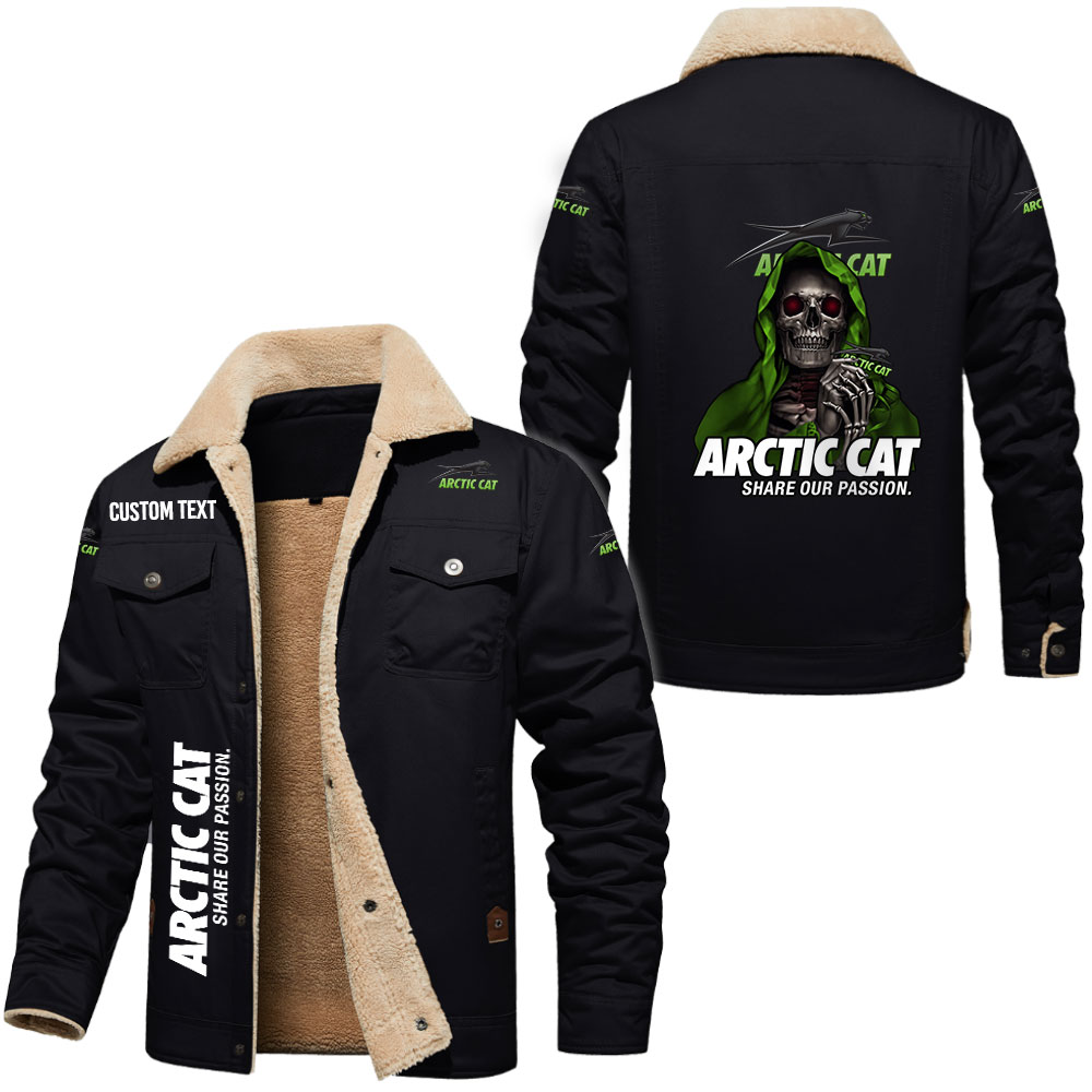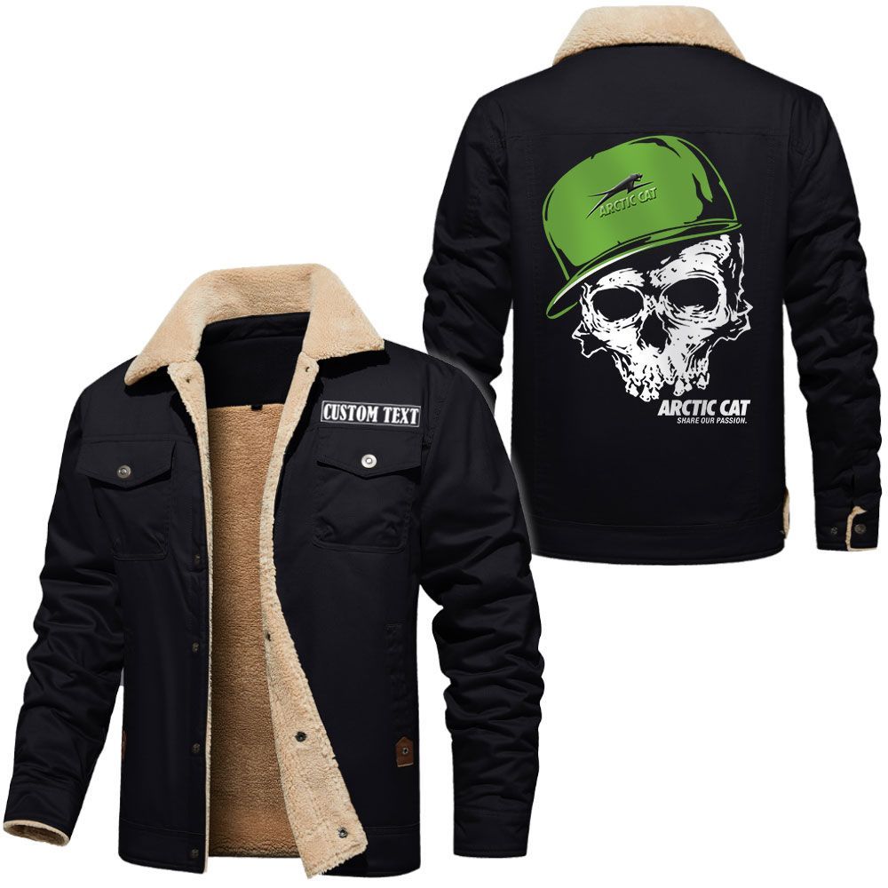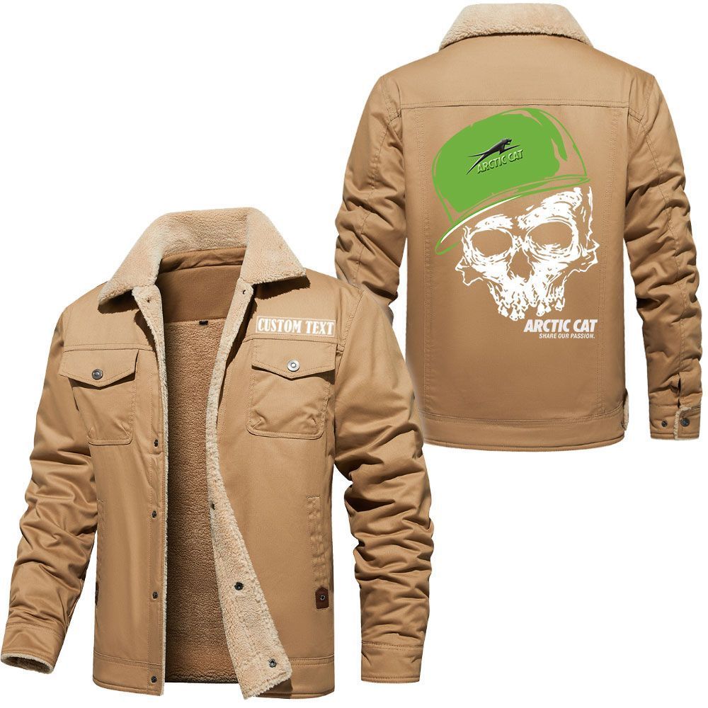 Arctic cat Logo Custom Name Cargo Fleece Lined Cotton Jacket Personalized Outerwear with Skull Design