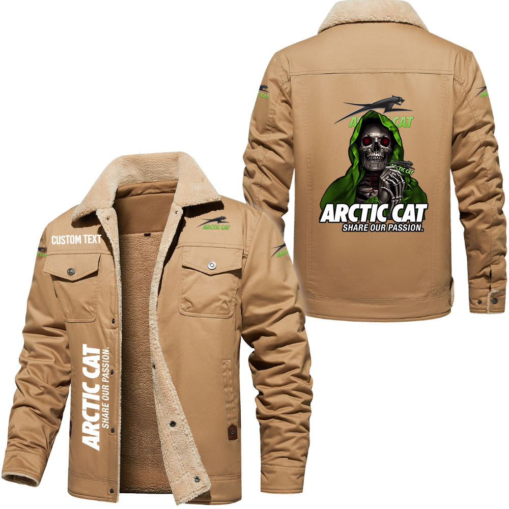 Arctic Cat Logo Custom Text Share Our Passion Cargo Fleece Lined Cotton Jacket