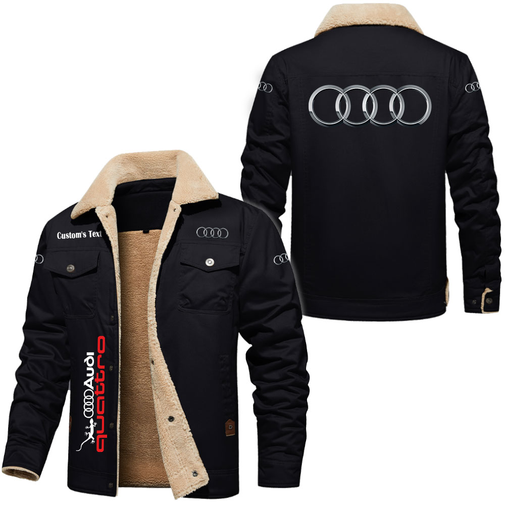 Audi Quattro Logo Custom Name Cargo Fleece Lined Cotton Jacket Stylish Warm Personalized Outerwear