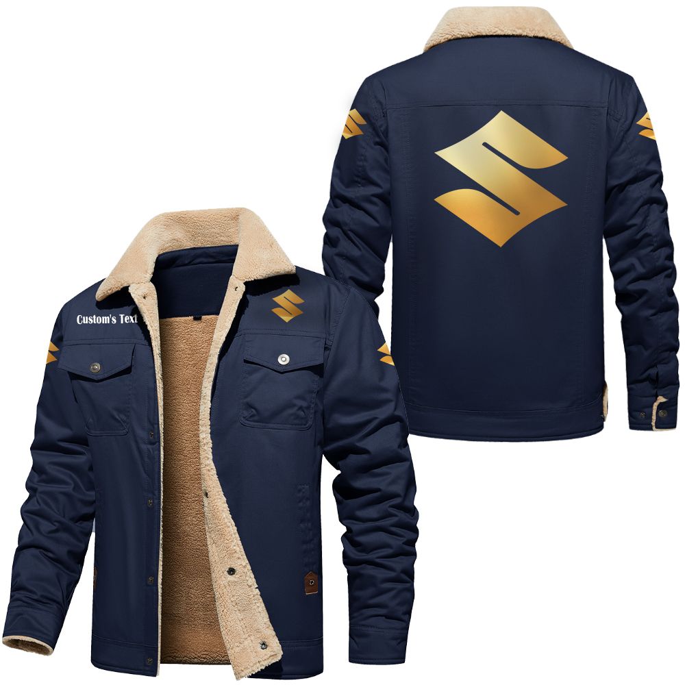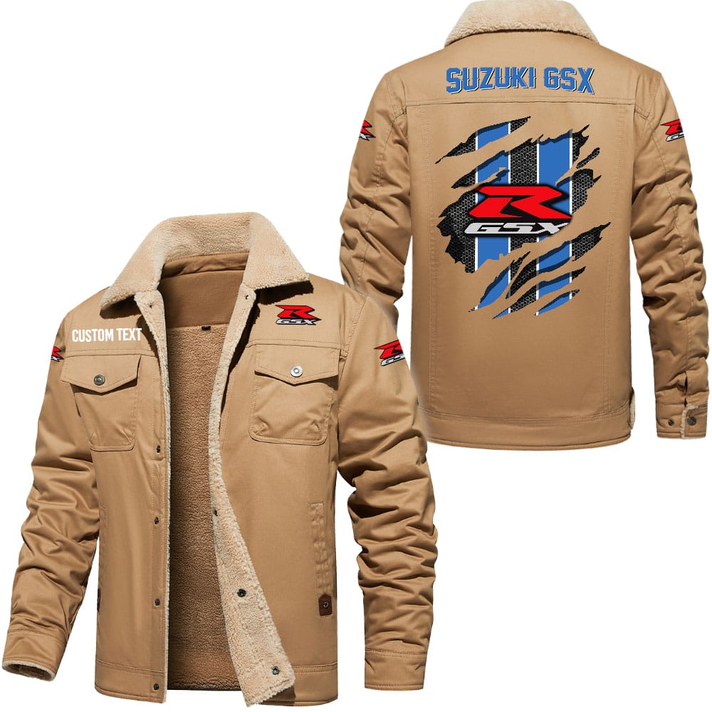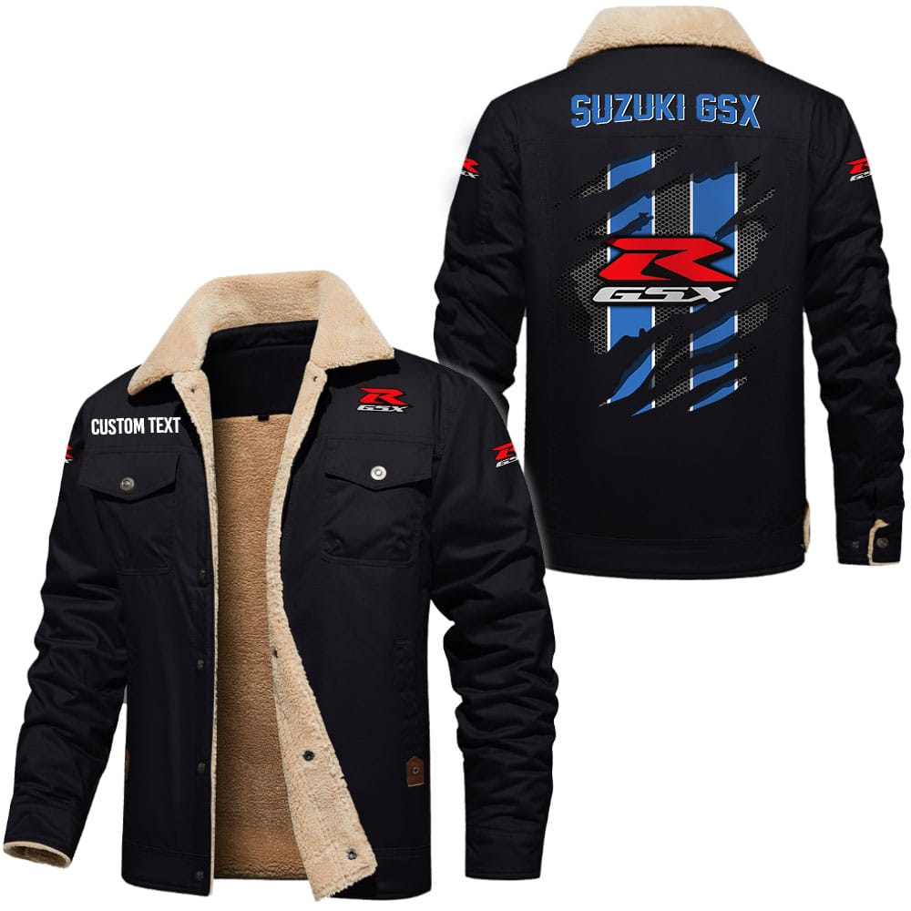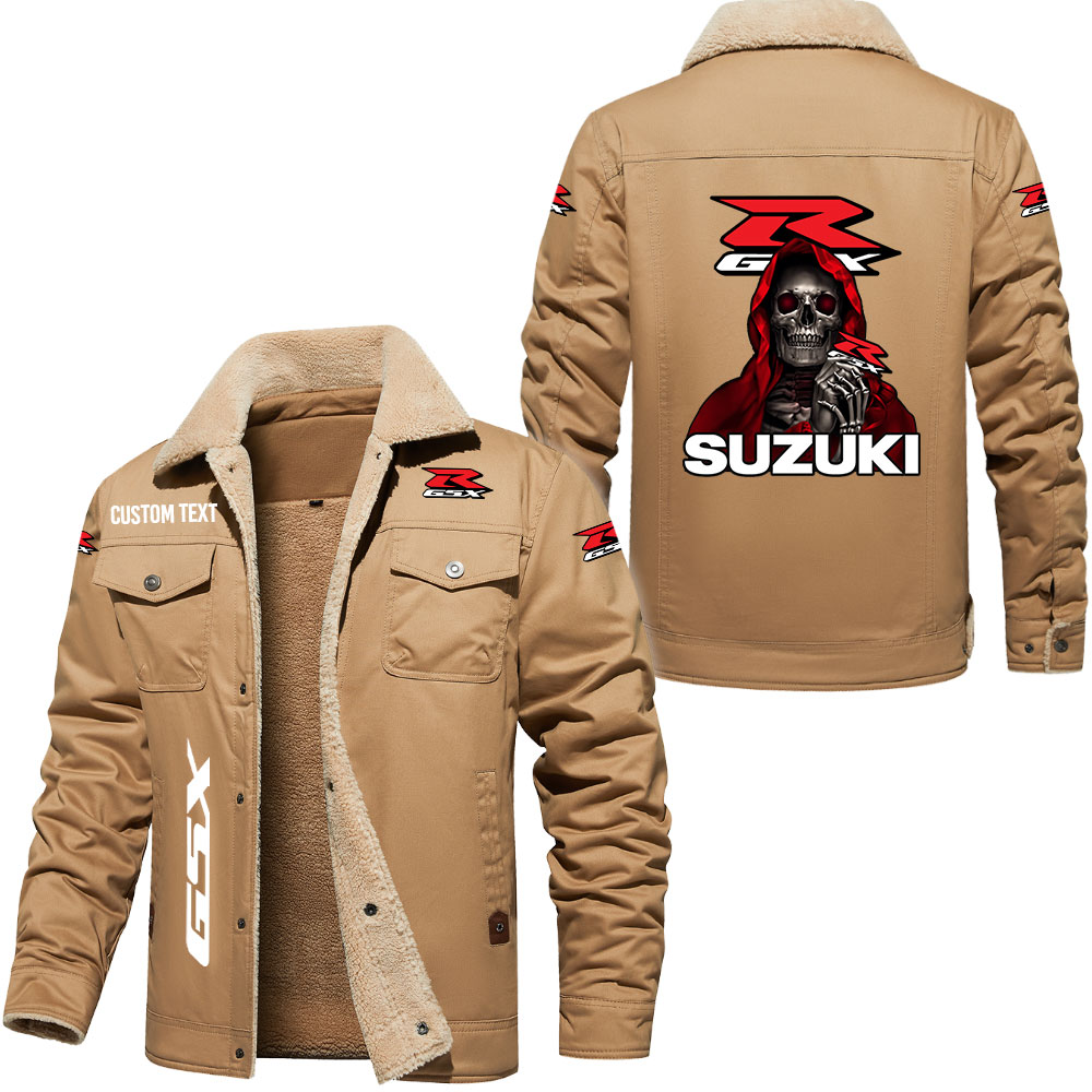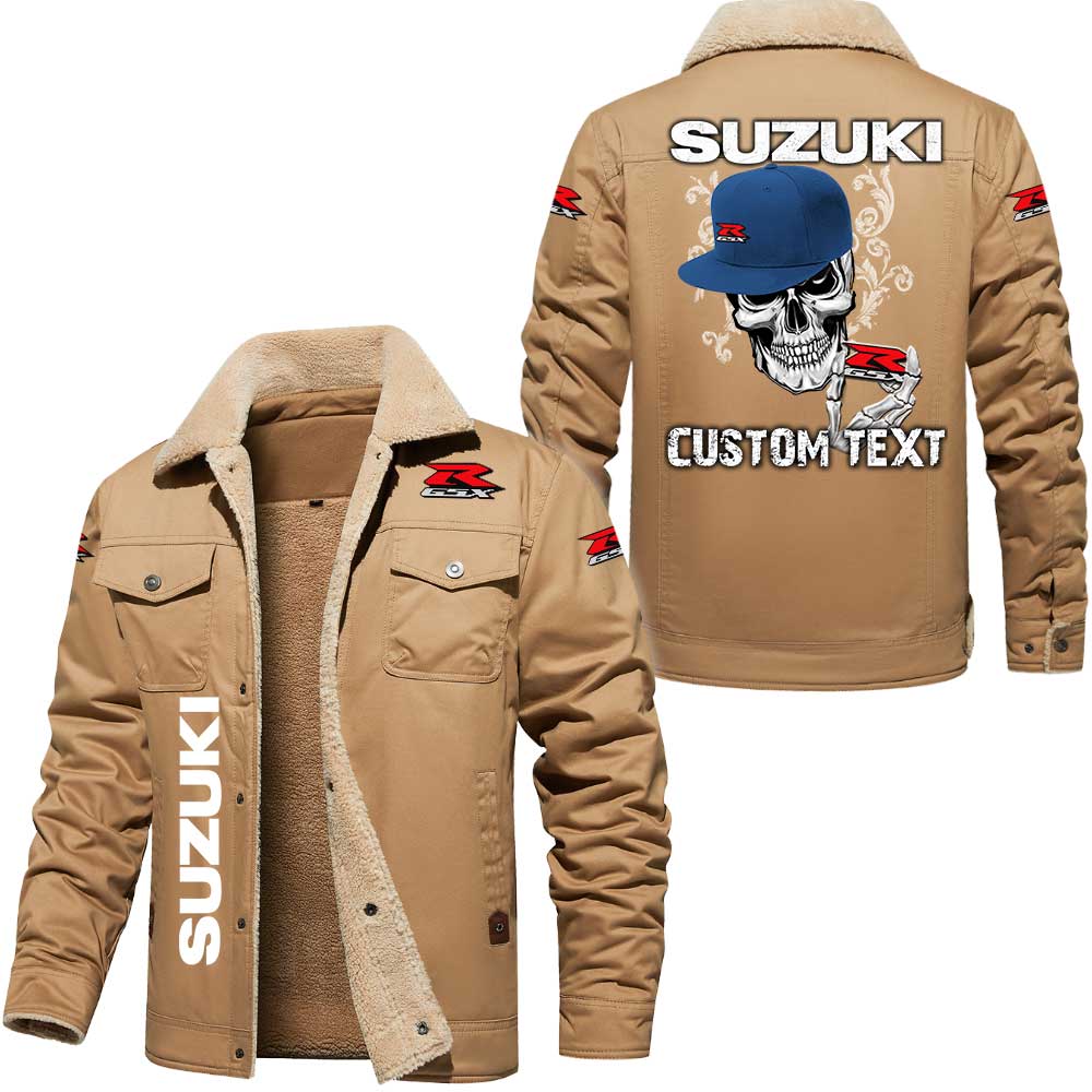 Suzuki Gsx Logo Custom Text Cargo Fleece Lined Cotton Jacket