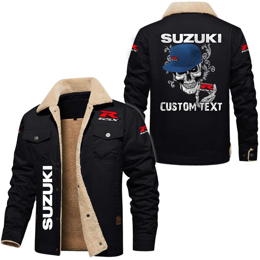 Suzuki Gsx Skull Custom Name Cargo Fleece Lined Cotton Jacket