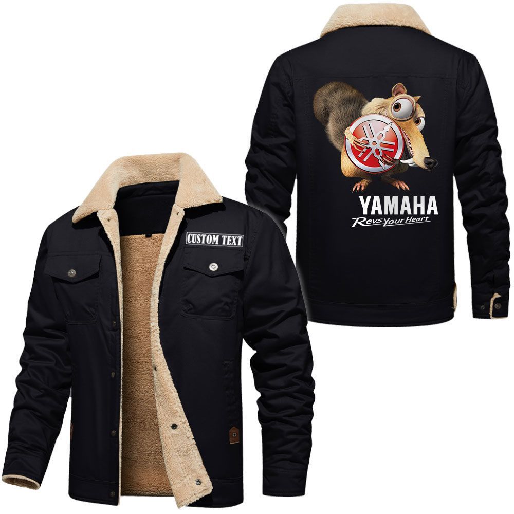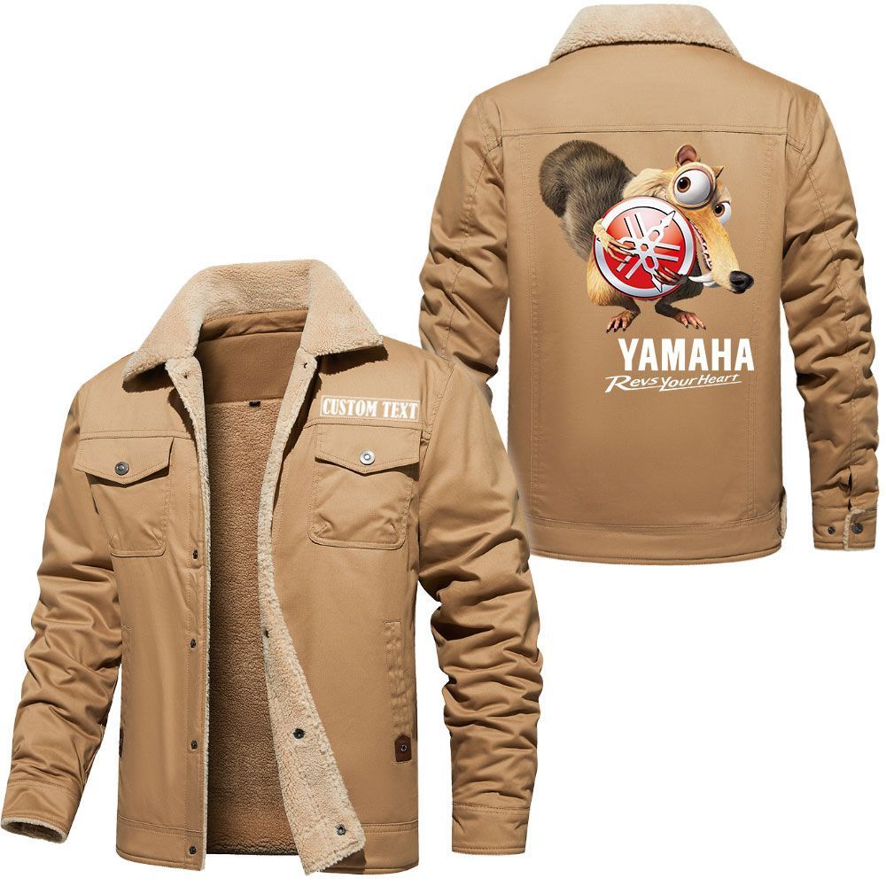 Yamaha Logo Custom Name Cargo Fleece Lined Cotton Jacket Scrat Ice Age Design Personalized Outerwear