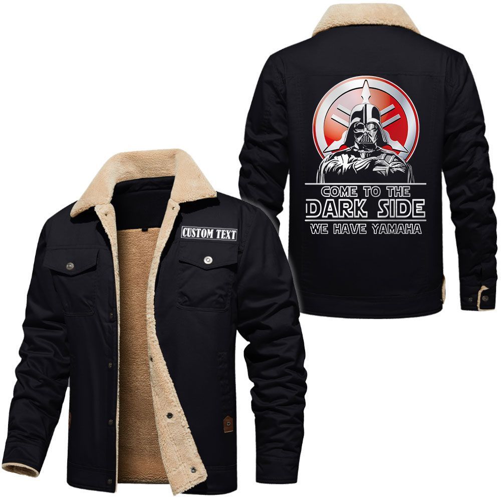 Yamaha Logo Custom Name Cargo Fleece Lined Cotton Jacket Personalized Outerwear with Dark Side Star Wars Design