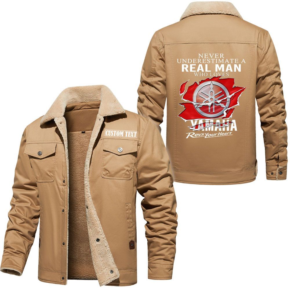 Yamaha Logo Custom Name Cargo Fleece Lined Cotton Jacket A Real Man Who Loves Personalized Outerwear