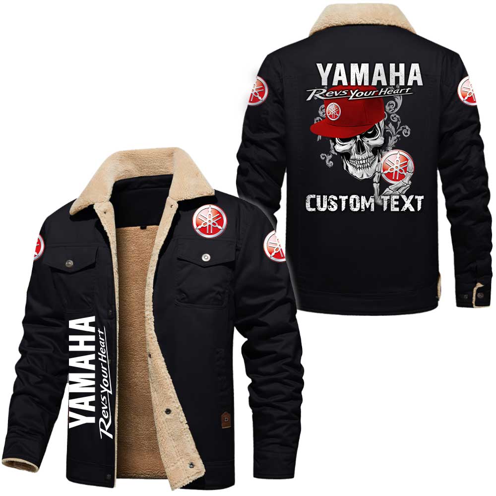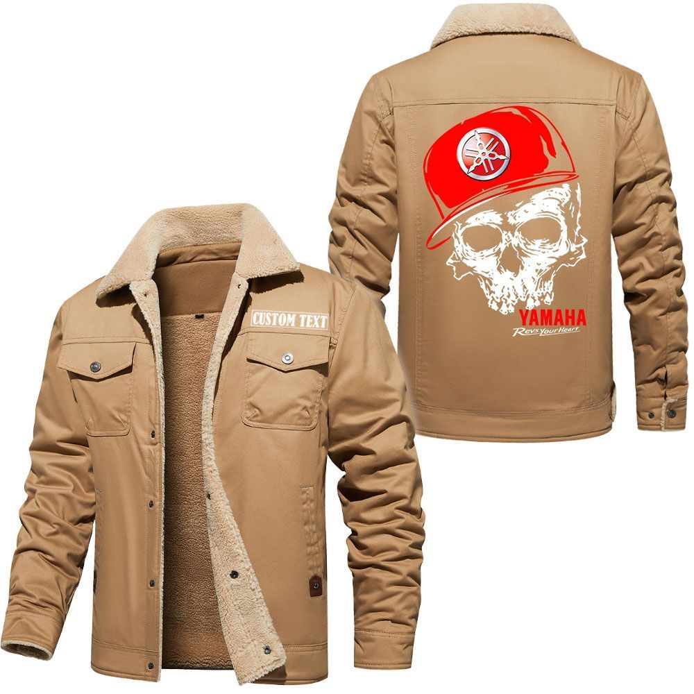 Yamaha Logo Custom Name Cargo Fleece Lined Cotton Jacket Personalized Outerwear with Skull Design