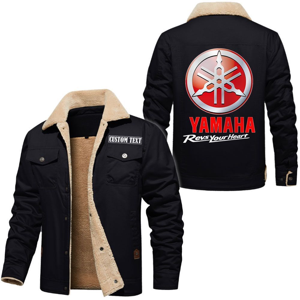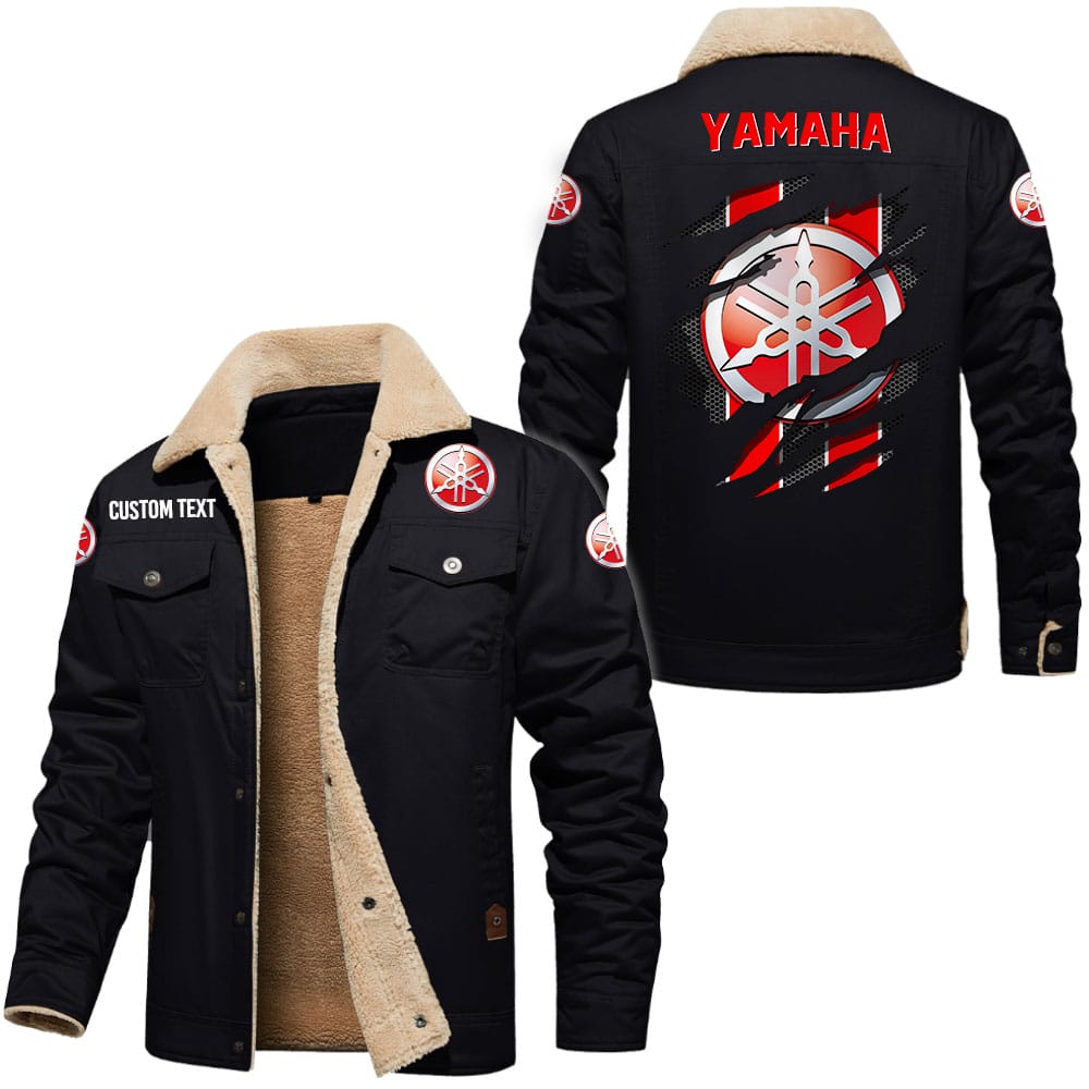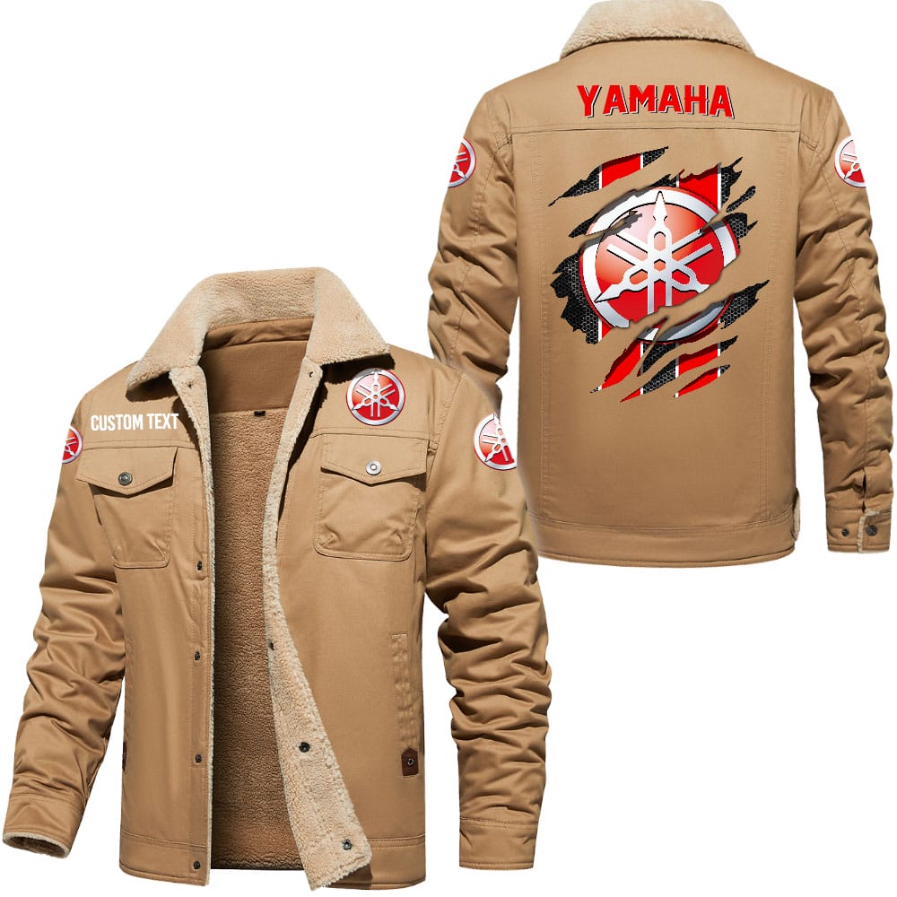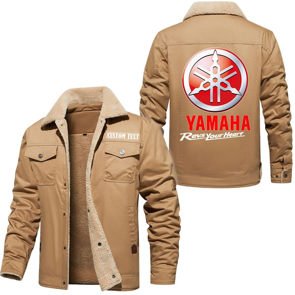 Yamaha Logo Custom Name Cargo Fleece Lined Cotton Jacket Stylish Warm Personalized Outerwear