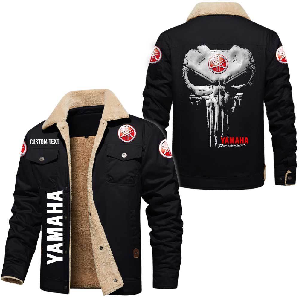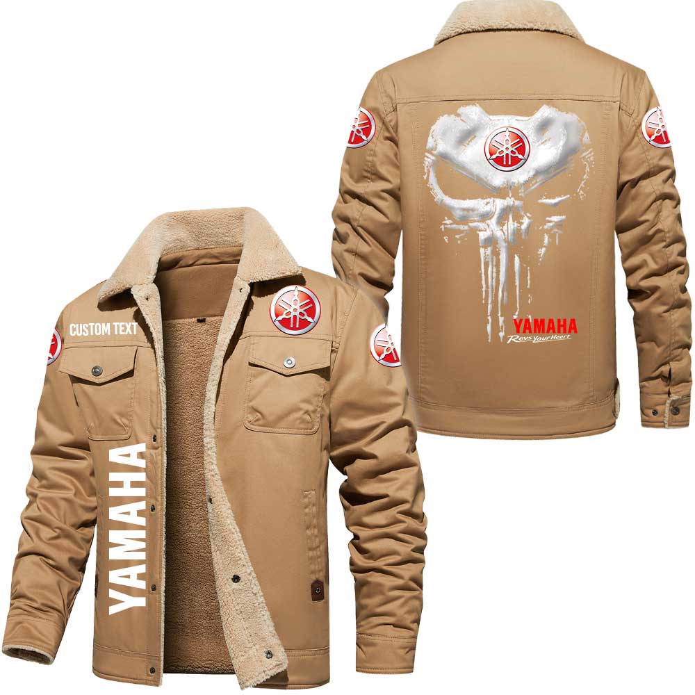 Yamaha Logo Custom Name Cargo Fleece Lined Cotton Jacket Personalized Outerwear with Punisher Skull Design