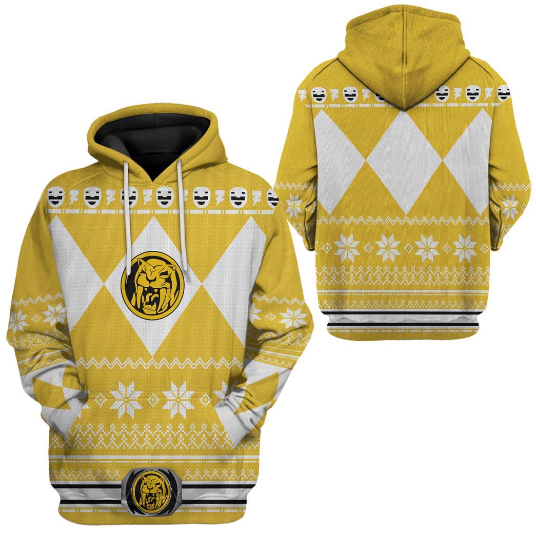 Yellow MIGHTY MORPHIN Power Ranger Ugly Costume Hoodie Sweatshirt T-Shirt Sweatpants 3D