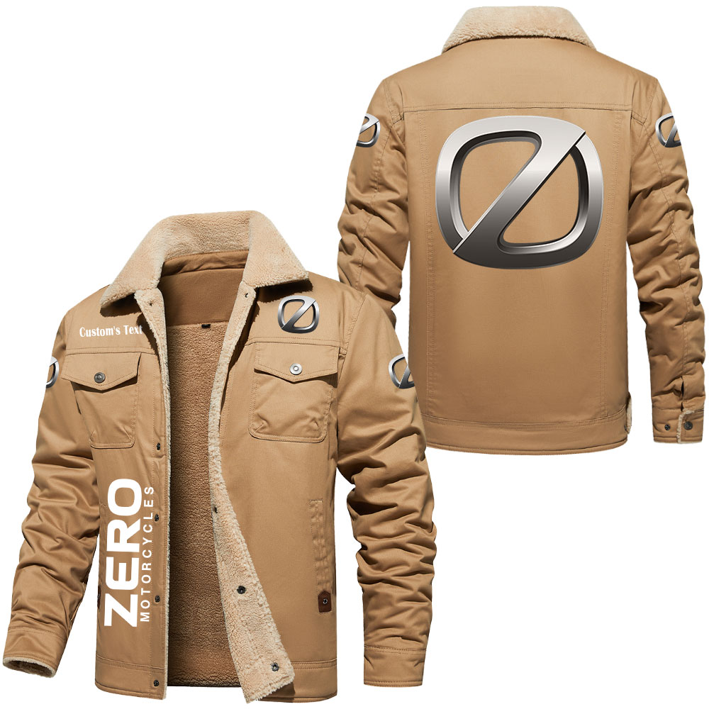 Zero Motorcycles Logo Custom Text Cargo Fleece Lined Cotton Jacket