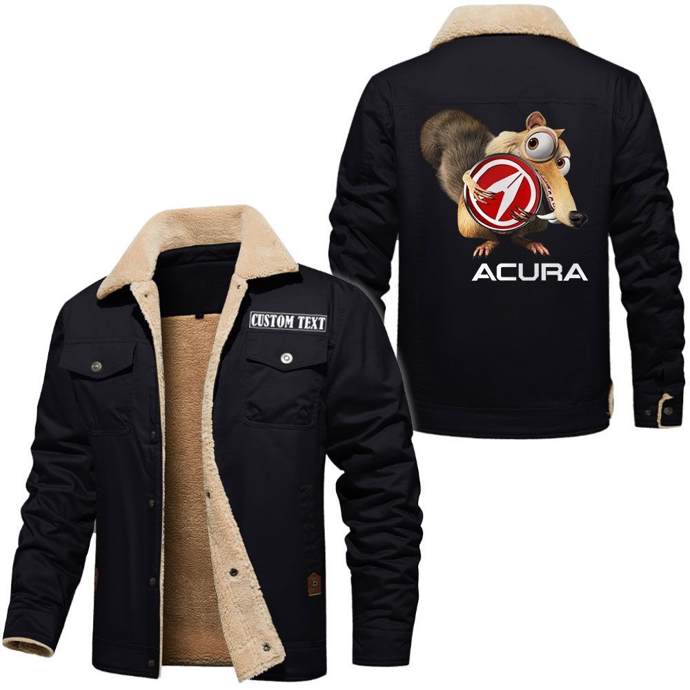 Acura Logo Custom Name Cargo Fleece Lined Cotton Jacket Scrat Ice Age Design Personalized Outerwear