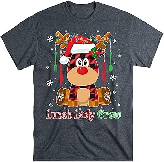 Funny Lunch Lady Red Plaid Buffalo Reindeer Xmas Gift T-Shirt – Dark Heather/X-Large