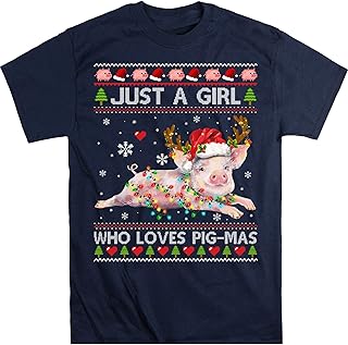 Funny Pigs Christmas Xmas T-Shirt Pig Lovers Lights Christmas Pajama T-Shirt – Navy/Small