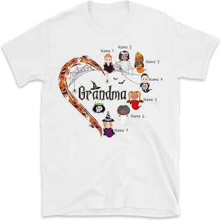 Grandma Halloween with Grandkids Shirt Funny Grandma Boos Halloween Shirt Custom Grandma Mimi Mom Gigi Nana Halloween Costume Multicolored