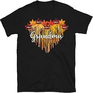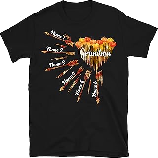 Grandma Fall Halloween Heart with Grandkids Names Personalized Grandma Shirt Grandma and Grandchildren Shirt Multicolored