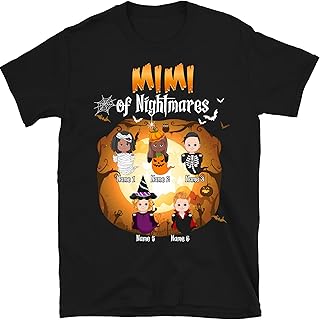 Grandma of Nighrmares Ghost with Grandkids Shirt Funny Grandma Halloween Shirt Custom Grandma Mimi Mom Nana Multicolored