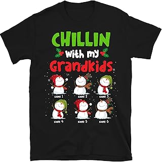 Grandma with Grandkids Name Christmas Personalized T Shirt Chillin with My Grandkids Snowmen Shirt