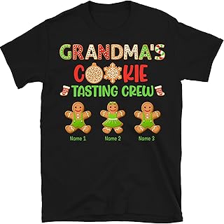 Grandma with Grandkids Name Christmas Personalized T Shirt Grandma’s Cookie Tasting Crew Christmas Cookies Kids’ Name Shirt