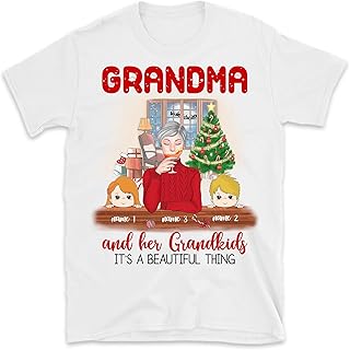 Grandma with Grandkids Name Christmas Personalized T Shirt Grandma and Her Grandkids Shirt
