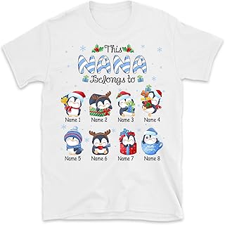 Grandma with Grandkids Name Christmas Personalized T Shirt This Grandma Belongs to Grandkids Penguin Shirt