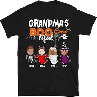 Grandma’s Boo Crew Grandkids Shirt Funny Grandma Boos Halloween Shirt Custom Grandma Mimi Mom Gigi Nana Halloween Costume Multicolored