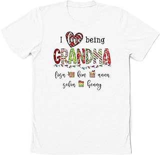 I Love Being Grandma Christmas Grandma Shirt Grandma Mimi Nana with Grandkids Names Shirt