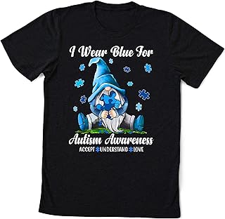 I Wear Blue for Autism Awareness Accept Understand Gnomes T-Shirt Autism Mom Outfit