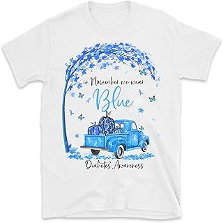 in November We Wear Blue Diabetes Awareness Blue Ribbon T-Shirt Diabetes Support T-Shirt – White/Large