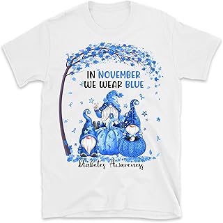 in November We Wear Blue Diabetes Awareness Month Wear Blue T-Shirt Diabetes Gnomes T-Shirt – White/Large