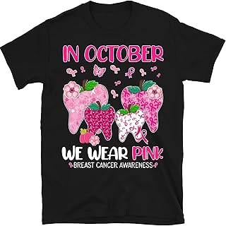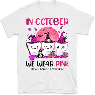 in October We Wear Pink Breast Cancer Awareness Dental Shirt Halloween Cancer Dentist Gift