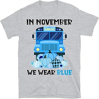 in November We Wear Blue School Bus Diabetes Awareness T Shirt Diabetes Survivor Shirt – Sport Grey/X-Large
