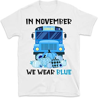 in November We Wear Blue School Bus Diabetes Awareness T Shirt Diabetes Survivor Shirt – White/X-Large